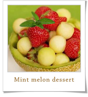Combine in a bowl the melon, strawberries, cucumber slices, chopped mint and grated orange rind.