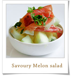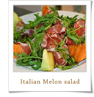 Combine the muskmelon, ham, rocket leaves and parmesan cheese in a salad bowl. Season with salt and pepper. Mix the salad dressing ingredients together, blend well and pour over salad. Serve with freshly baked bread.