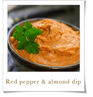 Place the peppers, garlic and almond flakes in a food processor. Process until smooth.